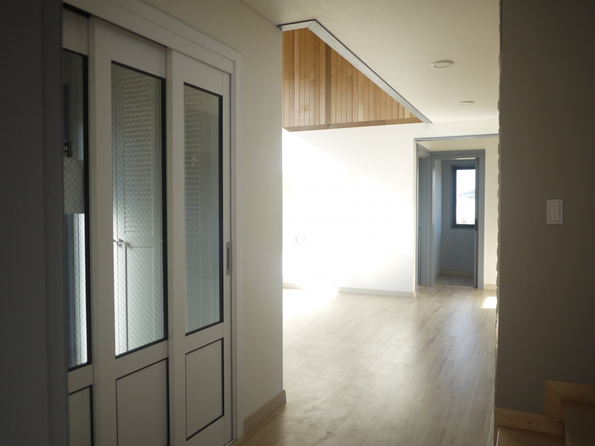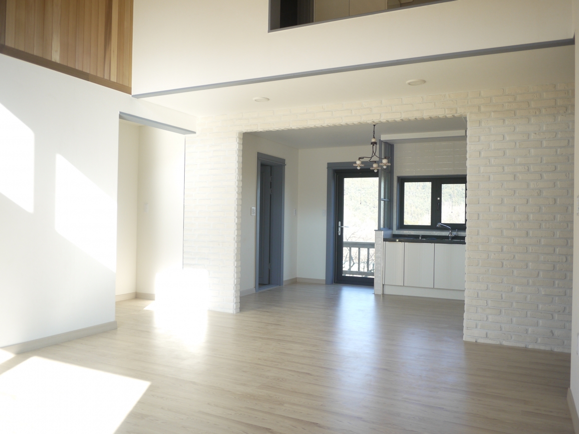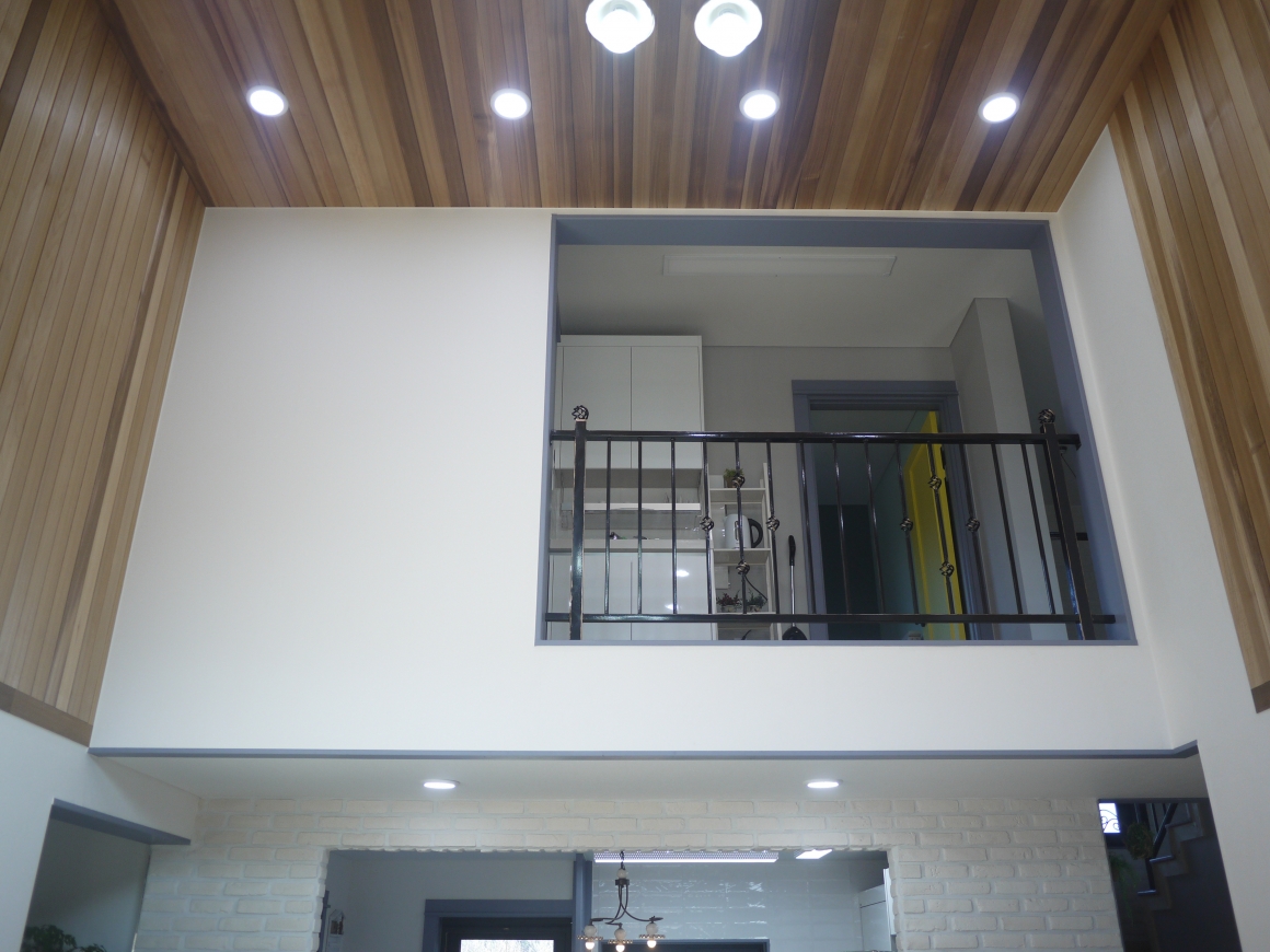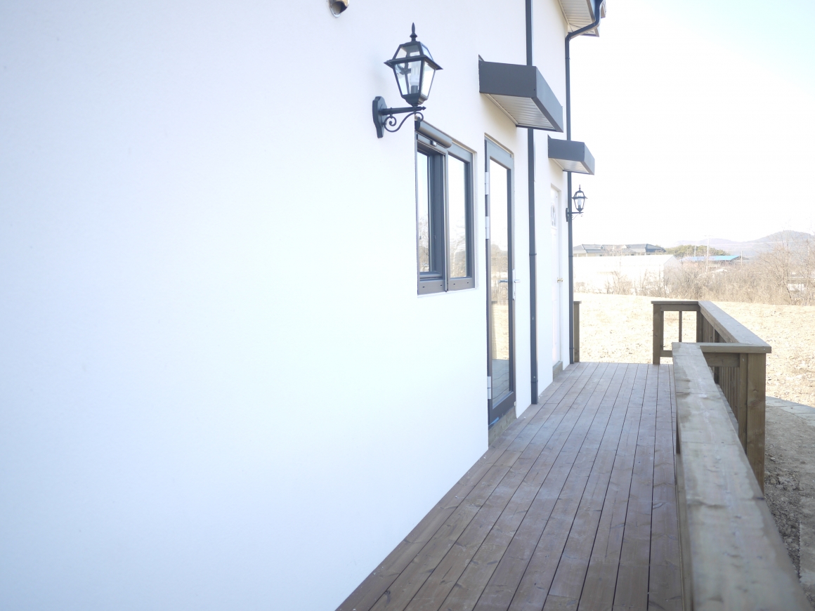 ▶건축개요 및 건축면적 위치: 경북 칠곡군 가산면 학하리 건축면적: 127.7㎡ 대지면적: 484㎡ 연 면적: 158.2㎡ 지역/지구: 계획관리지역 구 조: 경량목구조 ▶조경 및 데크공사 조경공사: 건축주 직접시공 데크공사: POST 4×4, BEAM 4×4, JOIST 2×6, DECK 2×4 방부목 시공 ▶기초 및 골조공사 통방석기초: 본체의 줄기초와 철근배근을 연결한 후 통방석방식의 방석기초로 연계하는 기초형태 골조공사: 외벽 2×6, 내벽 2×4, 다락방바닥장선 2×10, 서까래 2×10으로 시공한 경량목구조 ▶외부마감 및 지붕공사 외부마감: 50mm 단열재 하스너 고정후 매쉬작업과 이음새보강과 초벌미장 1회 스타코플렉스 정품 2회 도장 지붕공사: 리얼징크 600mm 거멀접기시공 - 세진판넬 정품 ▶내부인테리어 창호는 이태리 직수입 1등급 시스템창호 알파칸창호, 중문은 3연동 베리굿도어, 내부문은 홍송원목문, 거실천장 마이너스 몰딩마감 문선 및 창호봉틀과 몰딩은 유럽산 Golman S.P.F 원목 시공 계단재는 러시안산 자작나무로 시공 한양하우징 내부 인테리어공사는 계약시 서류에 제품 일체를 명시하여 건축주와의 투명성을 중요하게 생각합니다.