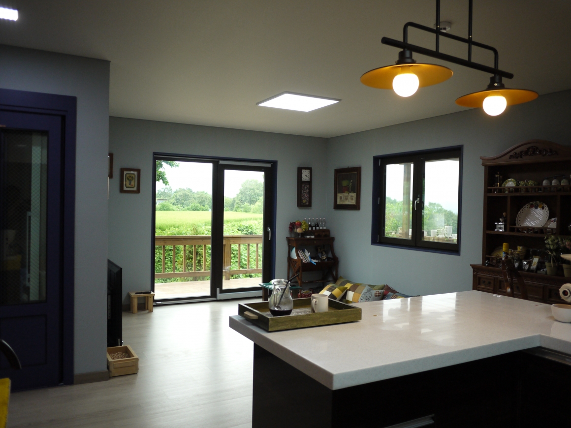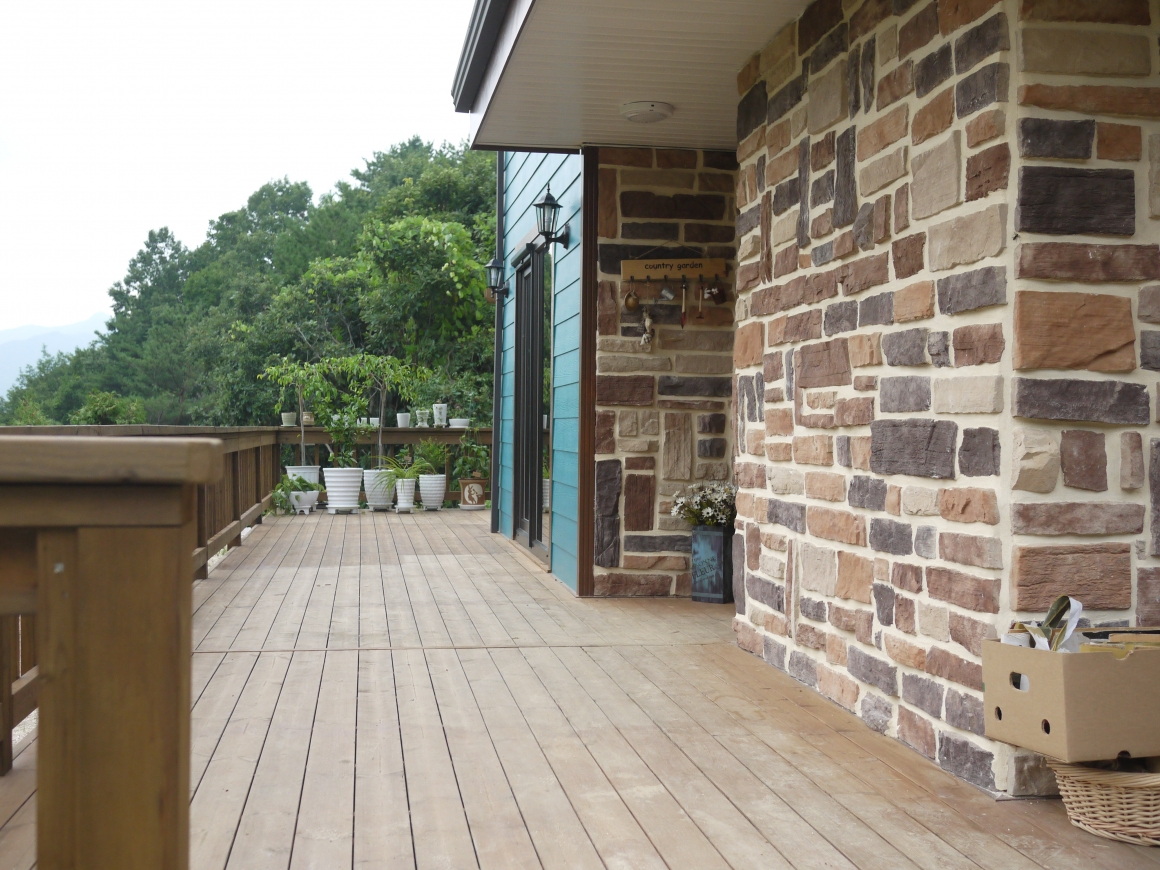 ▶건축개요 및 건축면적 위치: 강원도 화천군 간동면 오음리 건축면적: 92.2.㎡ 대지면적: 531㎡ 연 면적: 92.2㎡ 지역/지구: 계획관리지역 구 조: 경량목구조 ▶조경 및 데크공사 조경공사: 건축주 직접시공 데크공사: POST 4×4, BEAM 4×4, JOIST 2×6, DECK 1×4 탄화목 핀란드 LUNAWOOD로 시공 국내에서 유통되는 방부목은 수년전 국내 방부처리규정이 인정된 후로 내구성이나 변형이 만족스럽지 않아서 건축주 분들이 원하지 않을 경우 대리석으로 시공을 하게 되는데, 나무의 느낌을 원하고 시공비를 고려해서 핀란드 루나우드를 선택하였습니다. 상판은 못구멍 없이 클립으로 하나하나 시공을 하였습니다. 9mm 평철난간 POST 1M 간격으로 시공하였습니다. ▶기초 및 골조공사 통방석기초: 본체의 줄기초와 철근배근을 연결한 후 통방석방식의 방석기초로 연계하는 기초형태 골조공사: 외벽 2×6, 내벽 2×4, 다락방바닥장선 2×10, 서까래 2×10으로 시공한 경량목구조 ▶외부마감 및 지붕공사 외부마감: 점토벽돌 지붕공사: 2중 그림자 슁글 시공 ▶내부인테리어 창호는 유럽산 3중유리 1등급 유럽식시스템 이노텍창호, 중문은 베리굿도어 3연동, 내부문은 홍송원목문, 거실천장 매지몰딩, 문선 및 창호봉틀과 몰딩은 유럽산 Golman S.P.F 원목 시공, 계단마감재는 러시아산 자작나무로 시공 한양하우징 내부 인테리어공사는 계약시 서류에 제품 일체를 명시하여 건축주와의 투명성을 중요하게 생각합니다.