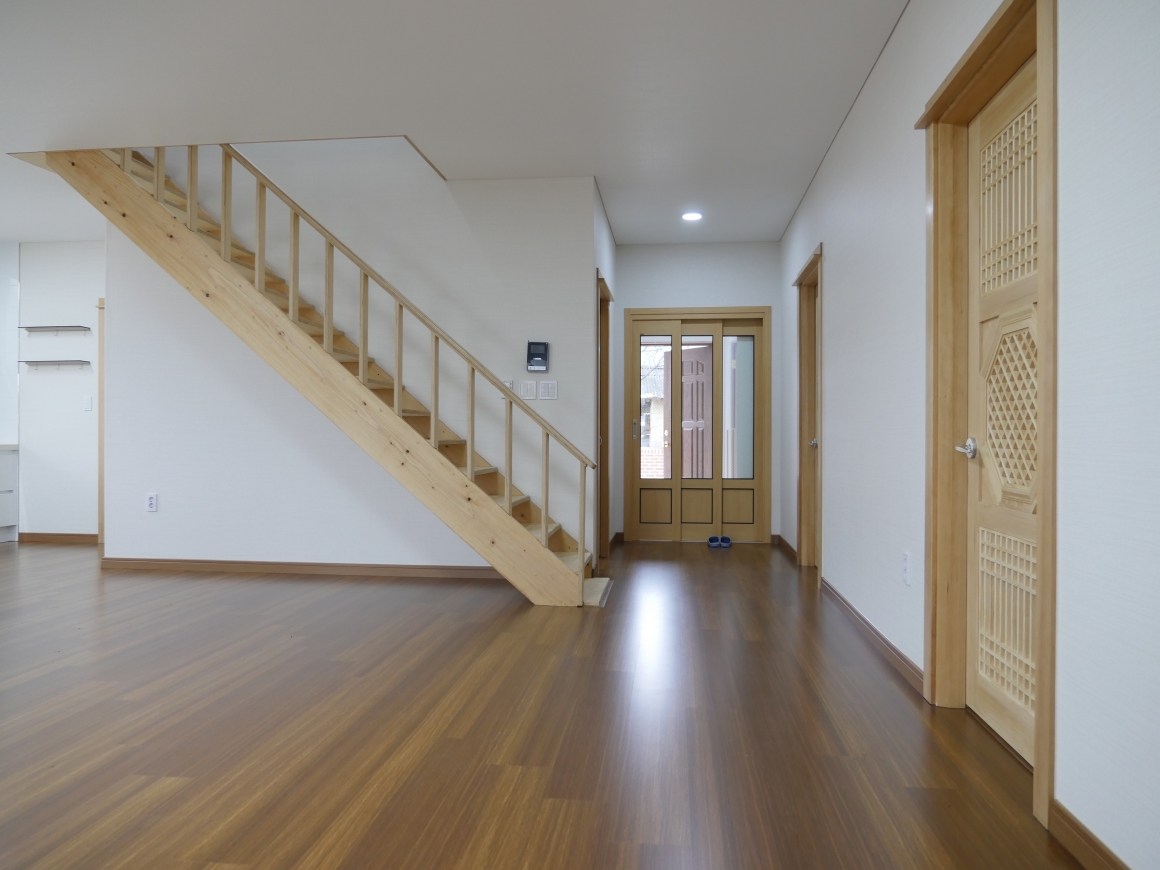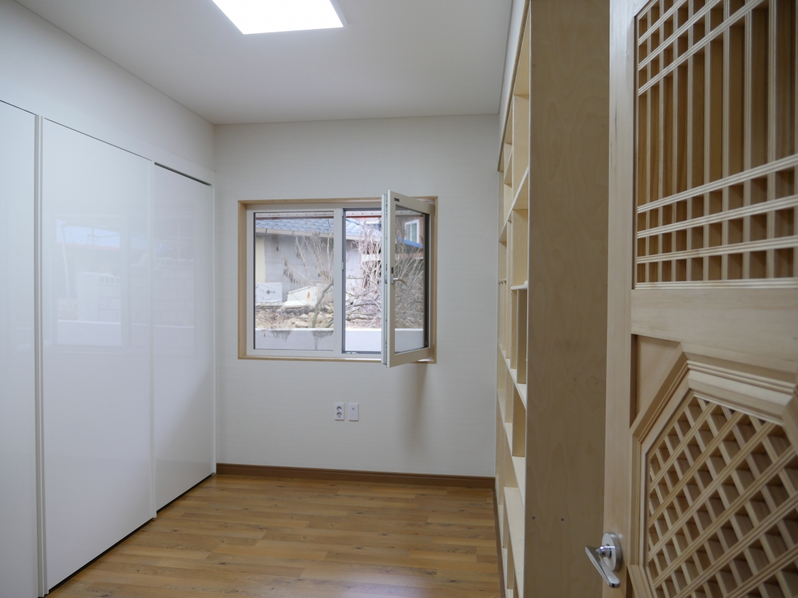 ▶건축개요 및 건축면적 위치: 경북 구미시 선산읍 소재리 건축면적: 112.42㎡ 대지면적: 1221㎡ 연 면적: 112.42㎡ 지역/지구: 계획관리지역 구 조: 경량목구조 ▶조경 및 데크공사 조경토목공사: 기존에 사용하던 아산석으로 선택하였으며, 조경석 아랫단에서 윗단까지 크기는 5~8목까지 시선에 부담스럽지 않게 균형을 맞추어 일주일 시공매지목은 회양목으로 식목, 디딤석과 경계석은 50mm 부정형현무암과 100/100사이즈 경계석으로 하부에 몰탈채움을 한후 시공 데크공사: 국내에서 유통되는 방부목은 수년전 국내 방부처리규정이 인정된 후로 내구성이나 변형이 만족스럽지 않아서 건축주 분들이 원하지 않을 경우 대리석으로 시공을 하게 되었습니다. 상판과 난간 및 손스침은 50mm 두께로 장구석은 중 사이즈로 에폭시 시공 ▶기초 및 골조공사 통방석기초: 본체의 줄기초와 철근배근을 연결한 후 통방석방식의 방석기초로 연계하는 기초형태 골조공사: 외벽 2×6, 내벽 2×4, 다락방바닥장선 2×10, 서까래 2×10으로 시공한 경량목구조 ▶외부마감 및 지붕공사 외부마감: 점토벽돌 지붕공사: 13mm Skytech Pro XL 외단열 시공, 38mm 방부목 격자상 시공후 모니어 평기와 시공 ▶내부인테리어 창호는 유럽산 3중유리 1등급 유럽식 이노텍창호, 중문은 베리굿도어 3연동, 내부문은 홍송팔각전통문, 내부계단은 자작나무, 문선 및 창호봉틀과 몰딩은 미국산 사우더스햄록 원목 시공 한양하우징 내부 인테리어공사는 계약시 서류에 제품 일체를 명시하여 건축주와의 투명성을 중요하게 생각합니다.