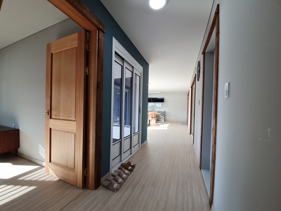 ※ 분양가격 : 4억2천만원 (현장방문상담가능) ▶건축개요 및 건축면적 위치: 경북 칠곡군 약목면 무림리 건축면적: 94.59㎡ 대지면적: 359㎡ 연 면적: 119.59㎡ 지역/지구: 계획관리지역 구 조: 경량목구조 ▶조경 및 데크공사 옹벽공사: 13mm 복배근으로 200피치로 배근한후, 강도210 콘크리트 시공 데크공사: JOIST 2×6, DECK 1×6 천연방부데크 멀바우목재로 시공 ▶기초 및 골조공사 통기초: 본체의 줄기초와 철근배근을 연결한 후 통방석방식의 방석기초로 연계하는 기초형태 골조공사: 외벽 2×6, 내벽 2×4, 서까래 2×10으로 시공한 경량목구조 ▶외부마감 및 지붕공사 외부마감: 치장벽돌시공 지붕공사: 리얼징크지붕시공 ▶내부인테리어 창호는 북미산 3중유리 1등급 북미식창호, 중문은 베리굿도어 3연동, 내부문은 홍송원목도어 문선 및 창호봉틀과 몰딩은 유럽산 Golman S.P.F 원목 시공 한양하우징 내부 인테리어공사는 계약시 서류에 제품 일체를 명시하여 건축주와의 투명성을 중요하게 생각합니다.