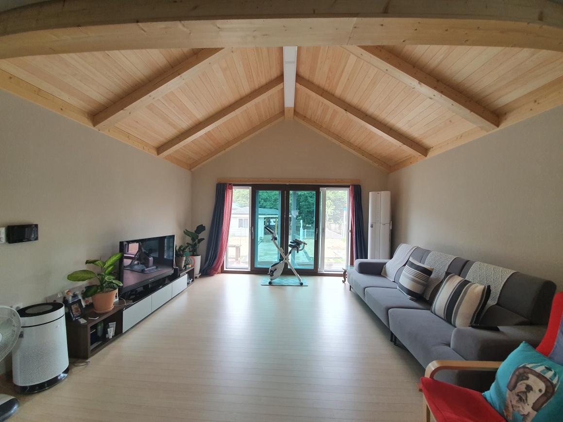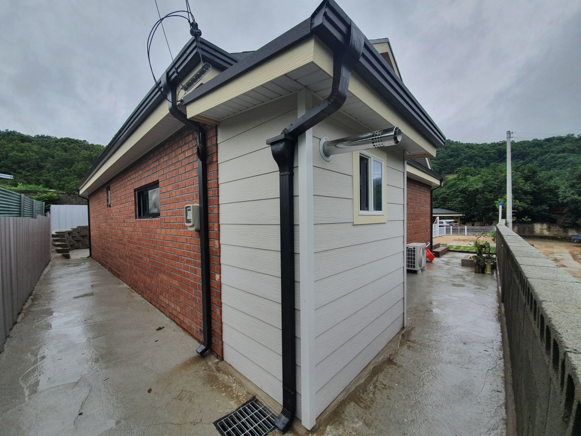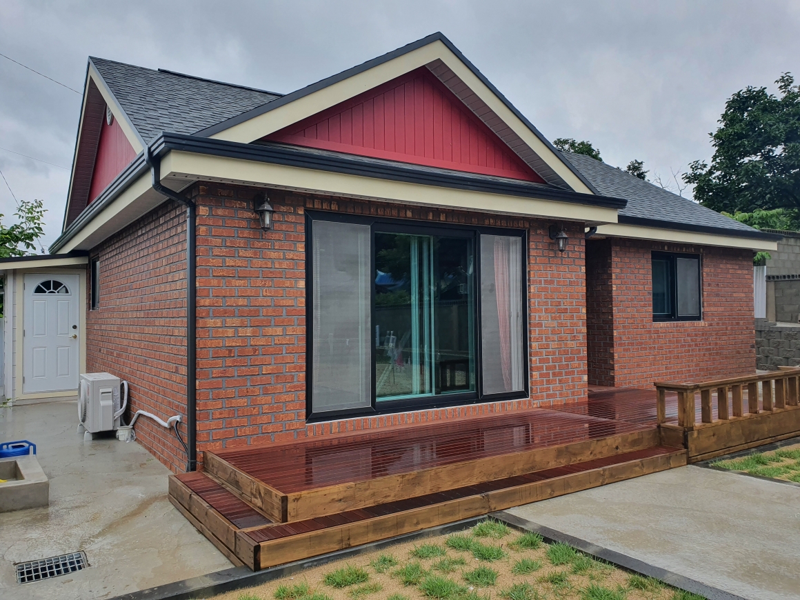 ▶건축개요 및 건축면적 위치: 경북 상주시 양촌동 건축면적: 81.43㎡ 대지면적: 480㎡ 연 면적: 84.73㎡ 지역/지구: 계획관리지역 구 조: 경량목구조 ▶조경 및 데크공사 옹벽공사: 13mm 복배근으로 200피치로 배근한후, 강도210 콘크리트 시공 데크공사: JOIST 2×6, DECK 1×6 천연방부데크 멀바우목재로 시공 ▶기초 및 골조공사 통기초: 본체의 줄기초와 철근배근을 연결한 후 통방석방식의 방석기초로 연계하는 기초형태 골조공사: 외벽 2×6, 내벽 2×4, 서까래 2×10으로 시공한 경량목구조 ▶외부마감 및 지붕공사 외부마감: 우성 점토벽돌시공 지붕공사: 2중그림자슁글시공 ▶내부인테리어 창호는 북미산 3중유리 1등급 KCC창호, 중문은 베리굿도어 3연동, 내부문은 홍송원목도어 문선 및 창호봉틀과 몰딩은 유럽산 Golman S.P.F 원목 시공 한양하우징은 건축의 디자인과 시공을 진행하면서 공사를 시공하는 업체의 입장보단 사는 사람이 편안한 건축을 추구합니다. 물론 보기 좋은 주택이 살기 좋은 것처럼 보일지 모르지만 1년, 3년, 10년 아니면 그 이상을 살아야하는 건축주는 오래도록 주택에 살아야하기 때문에 첫눈에 반한 건축보다는 수년을 살아도 늘 한결같고 살면서 문제가 없는 집이 우선이라고 생각합니다. 건축이란 설계는 물론 건축재료 선택은 그 주택의 효율성과 내구성에 직결되어 있습니다. 주변의 주택을 한번 둘러 보면 알수 있듯이 1년, 3년이 지난, 얼마되지 않은 주택이 벌써 햋빛과 비/바람으로인해 오염이 되어있어서 처음 입주때와 달리 많이들 그러려니하고 살고 계시는 주택들이 많이 있습니다. 시공을 마치고 처음 사진들은 아름다워 보일지 몰라도 오래도록 아름답고 변함없는 주택은 많지 않습니다. 저희 한양하우징은 20년간 목조주택을 시공한 업체로서 순간적인 아름다움 건축보단 오래도록 건강한 건축을 추구하고 있습니다. 내부 인테리어공사는 계약시 서류에 제품 일체를 명시하며,건축주와의 투명성을 중요하게 생각합니다.