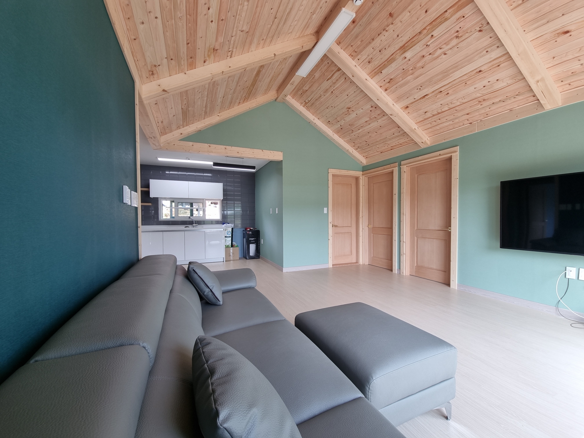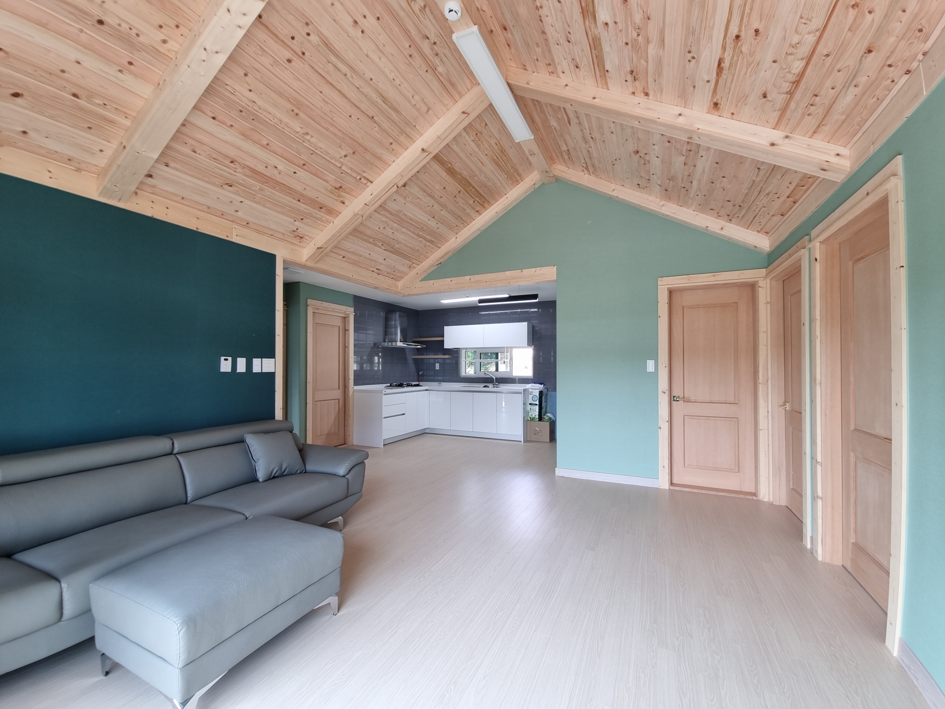 ▶건축개요 및 건축면적 위치: 강원도 화천군 간동면 건축면적: 80.68㎡ 대지면적: 479㎡ 연 면적: 80.68㎡ 지역/지구: 계획관리지역 구 조: 경량목구조 ▶조경 및 데크공사 옹벽공사: 13mm 복배근으로 200피치로 배근한후, 강도210 콘크리트 시공 데크공사: JOIST 2×6, DECK 1×6 파인방부목으로 시공 ▶기초 및 골조공사 통기초: 본체의 줄기초와 철근배근을 연결한 후 통방석방식의 방석기초로 연계하는 기초형태 골조공사: 외벽 2×6, 내벽 2×4, 서까래 2×10으로 시공한 경량목구조 ▶외부마감 및 지붕공사 외부마감: 제임스하디 COLOR+시공 지붕공사: 2중그림자슁글시공 ▶내부인테리어 창호는 북미산 3중유리 1등급 A1 창호, 중문은 베리굿도어 3연동, 내부문은 홍송원목도어 문선 및 창호봉틀과 몰딩은 유럽산 Golman S.P.F 원목 시공 한양하우징은 건축의 디자인과 시공을 진행하면서 공사를 시공하는 업체의 입장보단 사는 사람이 편안한 건축을 추구합니다. 물론 보기 좋은 주택이 살기 좋은 것처럼 보일지 모르지만 1년, 3년, 10년 아니면 그 이상을 살아야하는 건축주는 오래도록 주택에 살아야하기 때문에 첫눈에 반한 건축보다는 수년을 살아도 늘 한결같고 살면서 문제가 없는 집이 우선이라고 생각합니다. 건축이란 설계는 물론 건축재료 선택은 그 주택의 효율성과 내구성에 직결되어 있습니다. 주변의 주택을 한번 둘러 보면 알수 있듯이 1년, 3년이 지난, 얼마되지 않은 주택이 벌써 햋빛과 비/바람으로인해 오염이 되어있어서 처음 입주때와 달리 많이들 그러려니하고 살고 계시는 주택들이 많이 있습니다. 시공을 마치고 처음 사진들은 아름다워 보일지 몰라도 오래도록 아름답고 변함없는 주택은 많지 않습니다. 저희 한양하우징은 20년간 목조주택을 시공한 업체로서 순간적인 아름다움 건축보단 오래도록 건강한 건축을 추구하고 있습니다. 내부 인테리어공사는 계약시 서류에 제품 일체를 명시하며,건축주와의 투명성을 중요하게 생각합니다.