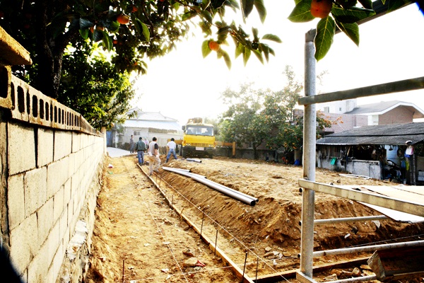 가을이 성큼 다가온 10월...구미시 해평면 30평 주택공사를 시작하였습니다. 공사금액이 평당삼백만원 초반이라 사실 부담이 되었지만 나름대로 마무리까지 최선을 다해봅니다...![]() 어느덧 시골 농촌에는 감이 선홍빛을 띠고 있었습니다... ![]() 지면 경사도가 높아 터다짐을 하는데 시간이 많이 걸렸습니다. ![]() 공사비 예산도 있고, 동결점이 낮은 지역이라 통기초로 계획을 잡고 콘크리트기초 버림작업을 준비하고 있습니다. ![]() 콘크리트 타설 완료후, 의외로 양이 많이 들어갔습니다. ![]() 서까래를 다 걸고 난후 골조사진을 한장 담아봅니다. |