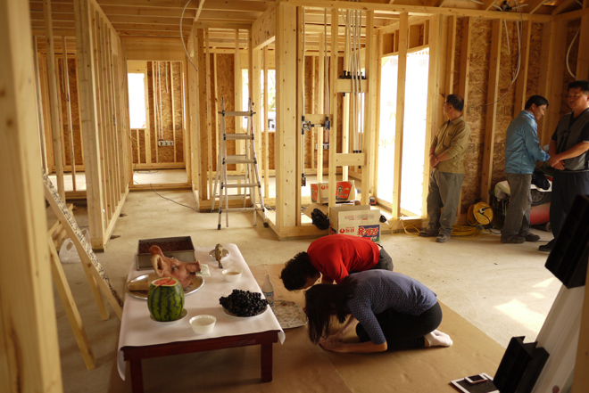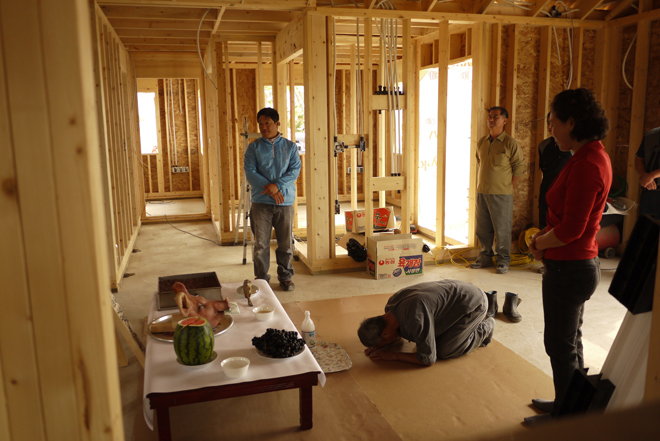 드디어 건축의 공정 절반을 완성하고 건축주분과 여러 협력업체 사장님들을 모시고 상랑식을 하였습니다.