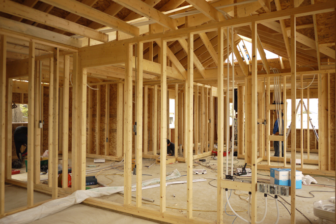 내부 전기배선공사와 설비공사를 병행하고 있습니다.