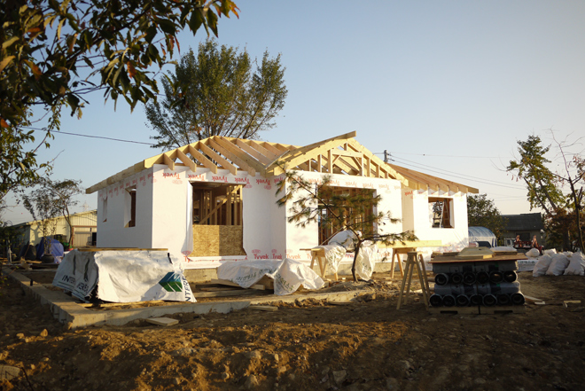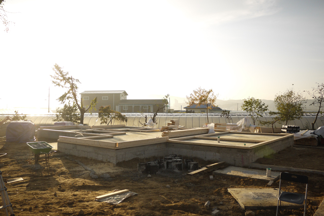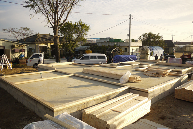 이른 아침, 어제 일일이 집 가장자리를 대패작업하고 정리해논 현장사진을 담아 보았습니다.