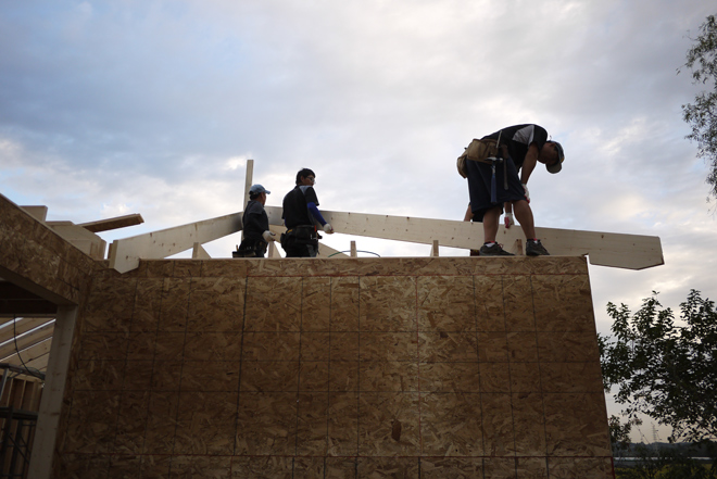 서까래 시공장면 입니다. 경량목구조 시공에 있어서 중요하지 않은 공정은 없습니다. 콘크리트 기초부터 지붕합판을 덮는 골조시공에서 수평레벨 작업이 어느 한부분 소홀히 한다면 서까래 작업시 애로사항이 많습니다. 이 부분을 가벼게 볼 수 있지만 완성도 높은 건축면에서는 좋은 평가를 받을 수 없겠지요.