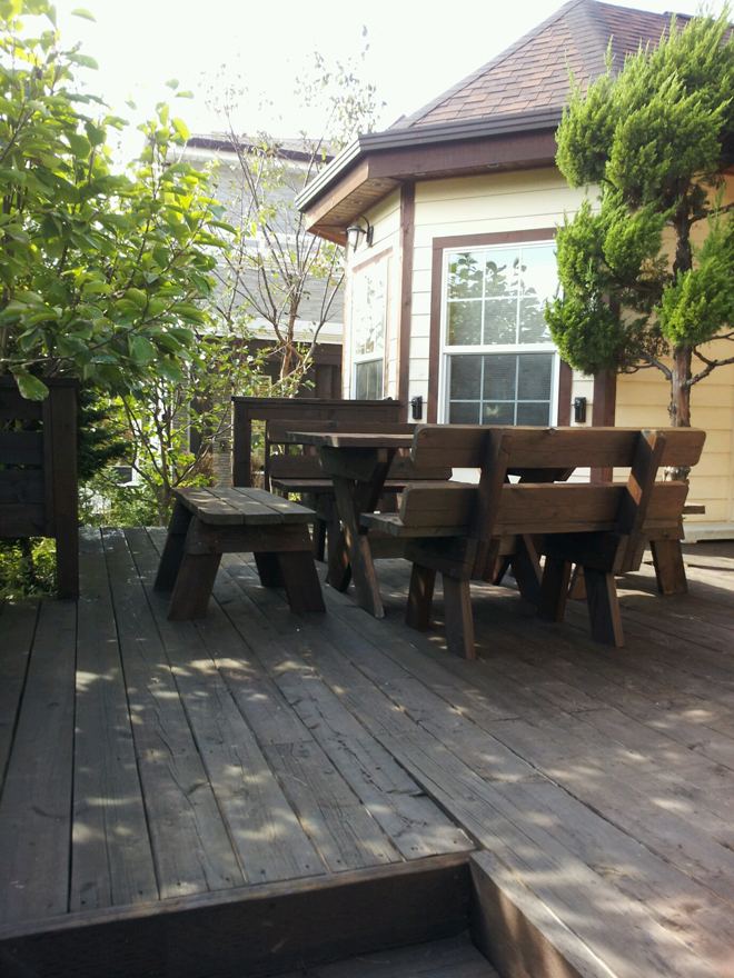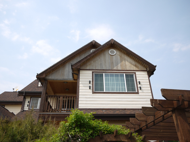 안녕하세요 한양하우징 임현돈입니다. 4년 6개월이 지난 시간동안 목재로 처리된 건축 외장은 변색이 진행되고 있었습니다. 무더운 여름과 걱정하며 지켜봤던 태풍에도 무사히 지나가고, 외부도장 공사를 실시하였습니다. 앞으로도 변함없이 요청해 오는 건축현장의 사후 처리는 책임지고 진행해 나가겠습니다.