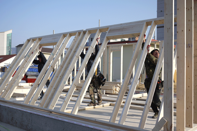 안녕하세요 한양하우징 임현돈입니다. 거의 3주간 아침 저녁으로 일교차가 큰 날씨에도 불구하고 비가 오기 전에 지붕공사를 마무리한다는 계획으로 다같이 일요일도 쉬지 못하고 고생한 한양하우징 목조팀과 협력업체 사장님 감사합니다. 하루하루 확연하게 달라진 한낮의 온도에 봄을 느낍니다. 가끔은 외롭고 힘들지만 현장에서 흘린 땀방울은 기대를 저버리지 않고 언젠가는 좋은 결실을 가져다 주리라 믿어 의심치 않습니다. 현장마다 사소한 것도 놓치지 않고 올한해 첫째, 완성도 높고 둘째, 고객이 만족하는 건축을 위해 최선을 다하겠습니다.