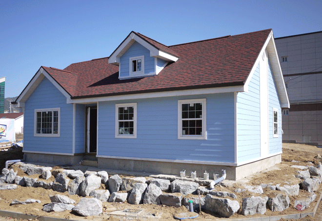 외장재는 북미산 James Hardie 세멘사이딩이며, 박공벽 중간 포인트월은, 북미산 아라우코 8" 합판입니다. 창호는 로이 시스템 적격제품군인 미국 직수입창호 Vanymax Window입니다. 외장도료는 색감이 뛰어나며 오래 되어도 색이 바라지 않는 미국산 Miller 아크릴수지페인팅 도료입니다. 건축공사시 좋은 건축재료를 사용하는 것은 업자의 양심이자 한편으로는 고객과의 약속입니다. 저희 한양하우징은 항상 건축계약 시 모든 공사 범위 안에 있는 건축재료는 하나하나 계약서에 명시를 하므로 서로 믿고 공사를 진행할 수 있습니다. 앞으로 많은 관심과 격려 부탁드립니다. |