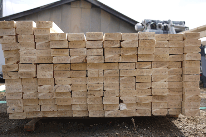외벽에서 1" 1/2을 띄우는 것은 나중에 지붕 서까래와 서까래 사이를 2×6를 끼워서 다시 물려주기 위함이고, 화재시 외부로 부터 공기의 유입을 막아주는 역할도 하기때문에 정확한 명칭은 Fire Blocking이라고 합니다.