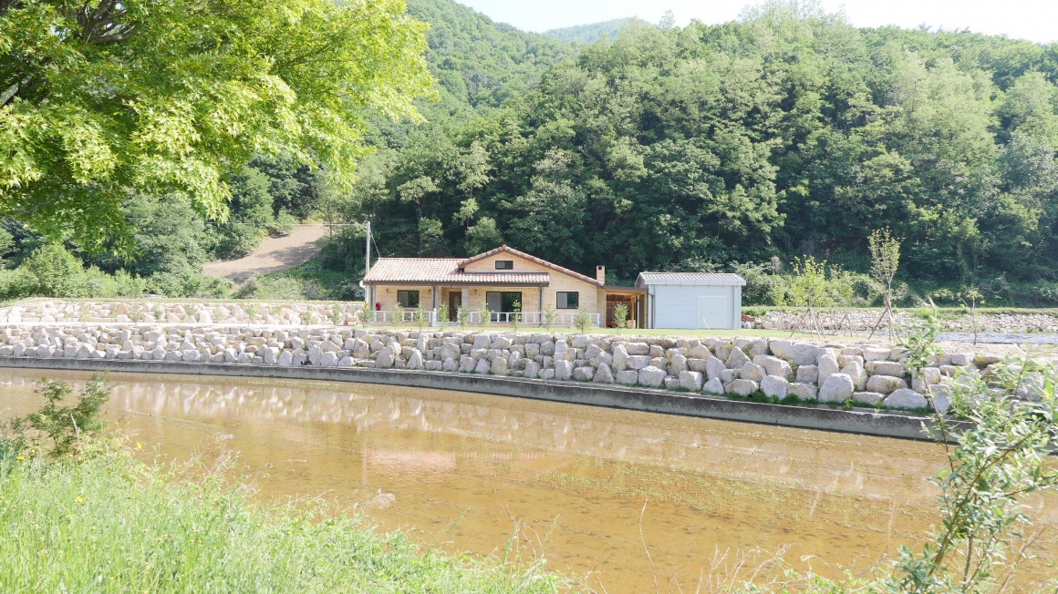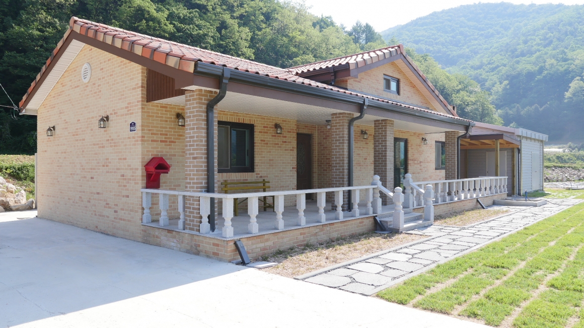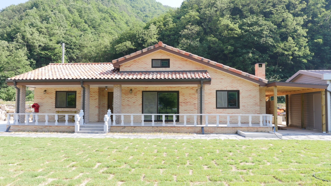 문경 가은에 본공사를 마무리하고 울진현장으로 이동한 후 가은에서 조경공사까지 마무리하여 사진을 정리해 봅니다. 별 다른 안전사고 없이 잘 마무리한 한양하우징 목조팀과 협력업체 분들 고생하셨습니다. ▶조경및토목공사 기존에 사용하던 아산석을 고려하지 않고 현장주위의 일반 자연석과 매치하기위해 화강석을 선택하였으며, 조경석 아랫단에서 윗단까지 크기는 5~8목까지 시선에 부담스럽지 않게 균형을 맞추어 일주일에 걸쳐 작업을 완료하였습니다. 매지목은 하단에 남천과 상단에 연산홍으로 식목하였습니다.