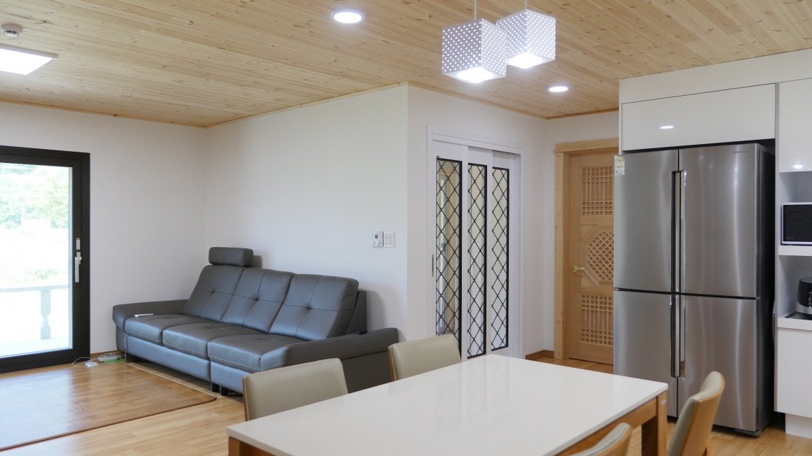 ▶내부인테리어 창호는 KCC2등급 창호, 중문은 베리굿도어 3연동, 내부문은 홍송팔각전통문, 거실천장 유럽산원목루바, 황토방은 황토미장후 마루시공 문선및창호봉틀과 몰딩은 유럽산 원목으로 작업하였습니다. 한양하우징 내부 인테리어공사는 계약시 서류에 제품 일체를 명시하여 건축주와의 투명성을 중요하게 생각합니다.