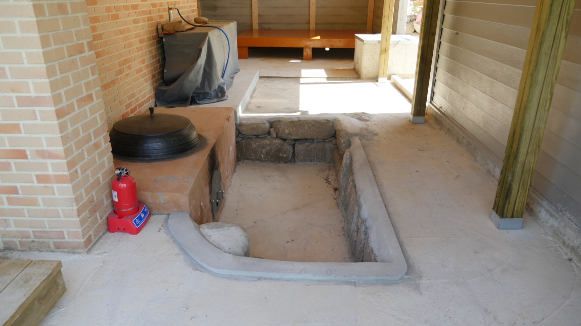 ▶황토방시공 재래식 아궁이를 설치하였고 상부는 지붕을 만들어 비가 들이치지 않게 만들었으며, 아궁이 앞쪽도 자연석으로 운치있게 연츨하려고 노력하였습니다. 불빠짐은 원할하게 빠지는 것을 확인하였으며, 건축주 사모님의 부탁으로 가마솥은 특별히 큰사이즈로 올려드렸습니다.