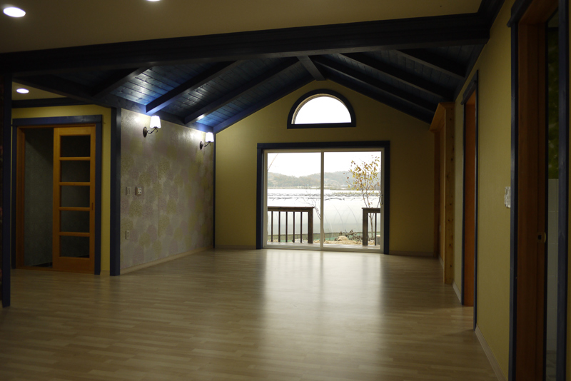 거의 3개월 동안 좋은 날씨에 공사를 잘 마무리 하였습니다. 다행스럽게도 골조공사 동안 비 한번 맞치지 않아 정말 고맙게 생각합니다. 마감재료와 색상을 선택하면서 건축주 송선생님 내외분과 고민을 많이 했는데, 걱정한 것 보다는 산뜻하게 나온 것 같아 기분이 좋았습니다. 최종공사완료까지 애써주신 협력업체 사장님과 한양하우징 식구들 고생 많이 했구요 다음 공사까 지 잘 준비해서 완성도 높은 건축을 만들어 갑시다. 감사합니다. 건축내부 인테리어 공사에 사용된 목재는 일체 유럽산 고급목자재에 북미산 친환경 스테인을 사용하였습니다.