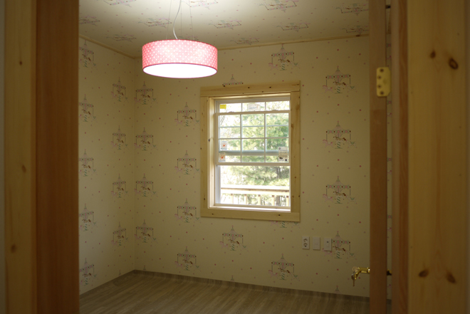 안방 맞은편에 첫째 공주방입니다. 핑크도트 방등 역시 사모님이 선택하셨습니다.