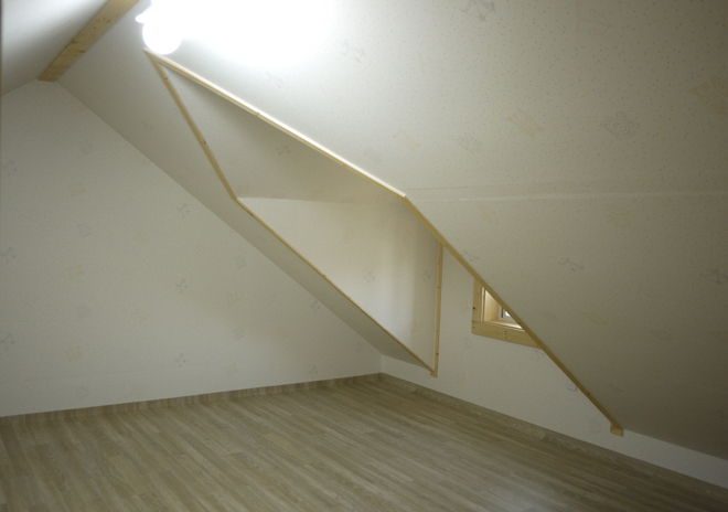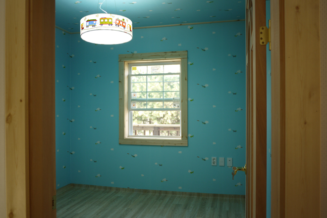 내부 천고가 1M 80 이상은 나오도록 지붕각도를 살려 시공하였구요. 바닥 난방은 몇 년 후 방으로 사용하게될 애기를 위해 전기판넬 보단 엑셀난방으로 시공하고 보일러를 상향식으로 지정하여 설치하였습니다.