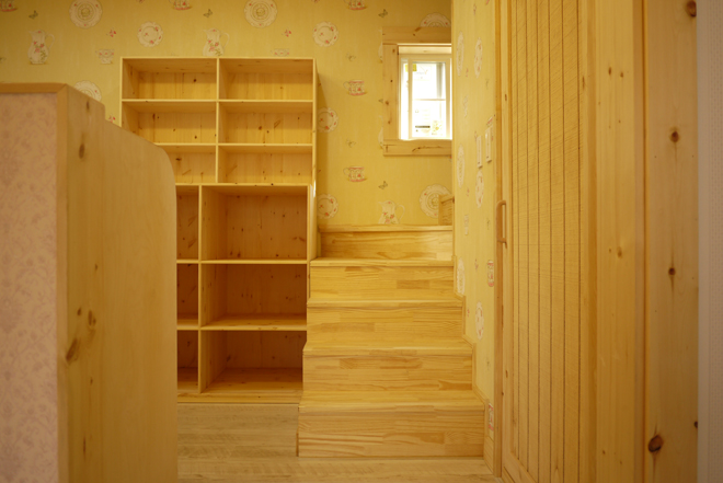 다락방으로 올라가는 계단의 측면 사진입니다.