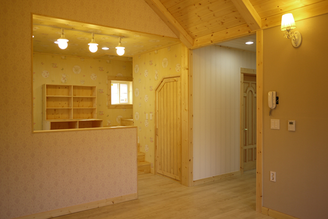 벽지는 모두 건축주 지정의 국내산 실크벽지로 마감하였습니다. 실내등과 실외등은 건축주와 협의하에 계약서에 책정된 공사금액 한도내에서 협의하에 지정하고 설치합니다.
