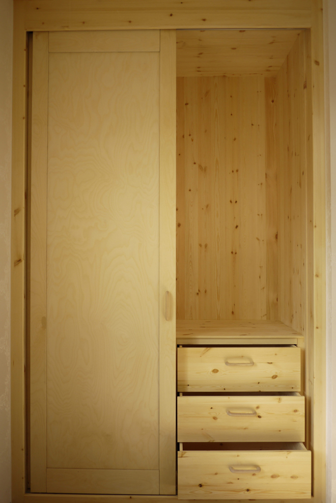 맨 처음 도면 계획을 잡을 때 해가 드는 남쪽으로 애기들 방을 배려하는 부모의 마음을 알 수 있듯 복도 끝 북쪽으로 안방을 정하시더군요. 그래서 다음 사진에서 볼 수 있듯 좋은 자작나무로 붙박이가구를 만들어 봤습니다.
