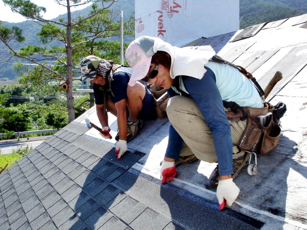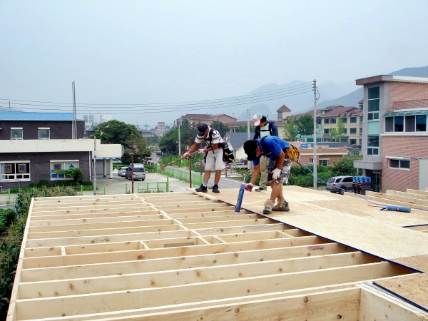 캐나다산, 미국산, 브라질산, 중국산 이렇게 봤습니다. 강도나 치수의 정확성에서 가격순서대로 캐나다산, 미국산, 기타 이렇게 좋습니다. 캐나다산이나 미국산은 못을 타공해보면 못을 박으면, 합판이 물고있는 힘이 꽉 물어줍니다. 하지만 그이하의 제품들은 강도는 나올지 몰라도 못을 타공했을때, 퍼석하다는 느낌입니다. 처음엔 괜찮을지 몰라도 분명 시간이 지나면 약해집니다. 저희 한양하우징은 그래서 자재상에 캐나다산OSB가 재고가 있는한 무조건 캐나다제품을 고집합니다. 그리고 지붕공사 작업은 가능하면 비계설치 완료후지붕작업을 권장합니다. 항상 안전사고는 불안정한 작업환경에서 일어납니다... |