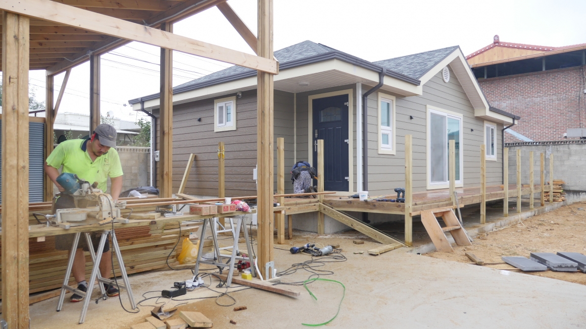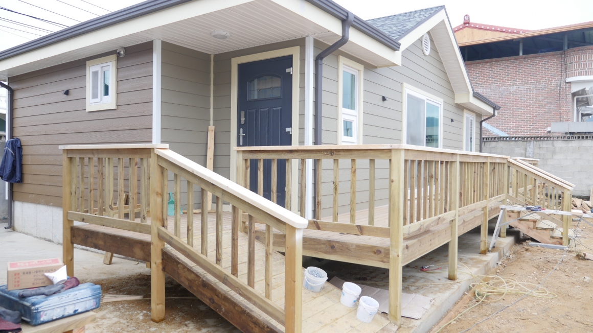 안녕하세요 한양하우징 임현돈입니다. 15년 동안 전국에서 목조주택만을 전문으로 시공을 해오다. 작년 가을 경북 구미시에 본사사무실을 오픈하고 8개월 동안 고객분들을 만나뵙고 많은 생각을 했습니다. 과연 이 어려운 경제에 가장 행복한 집은 무엇일까...최소한의 건축비로 가장 실용적이고 안전한 건축이라 생각되었습니다. 그래서 한양하우징에서 올해 봄부터 경북 구미시 산동 21평 현장을 준비하고 진행하였습니다. 가장 실용적인 건축비로 15년동안 지켜온 목조건축의 양심을 실현하였습니다. 배수준공 준비중이라, 조만간 최종마무리 공사를 한후 건축재료와 시공과정을 자세히 올리도록 하겠습니다. 많은 관심 부탁드립니다.