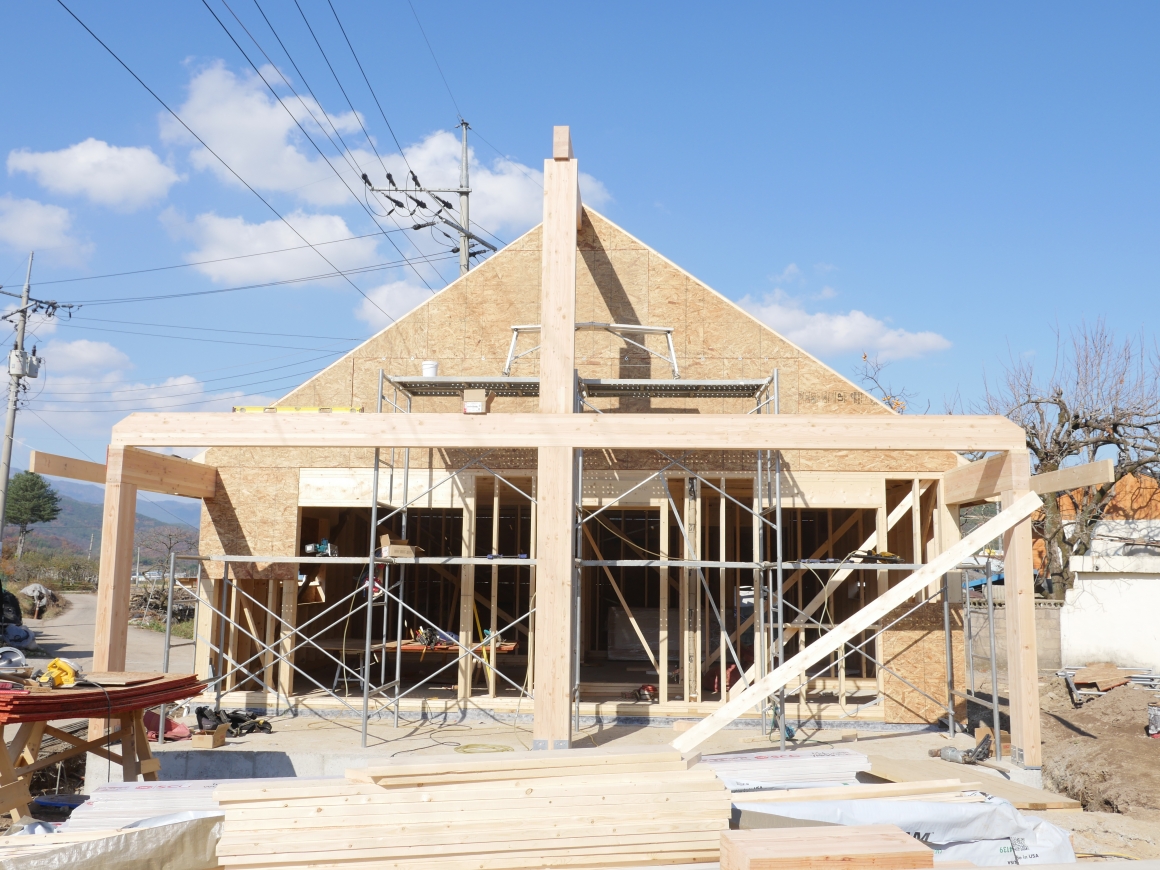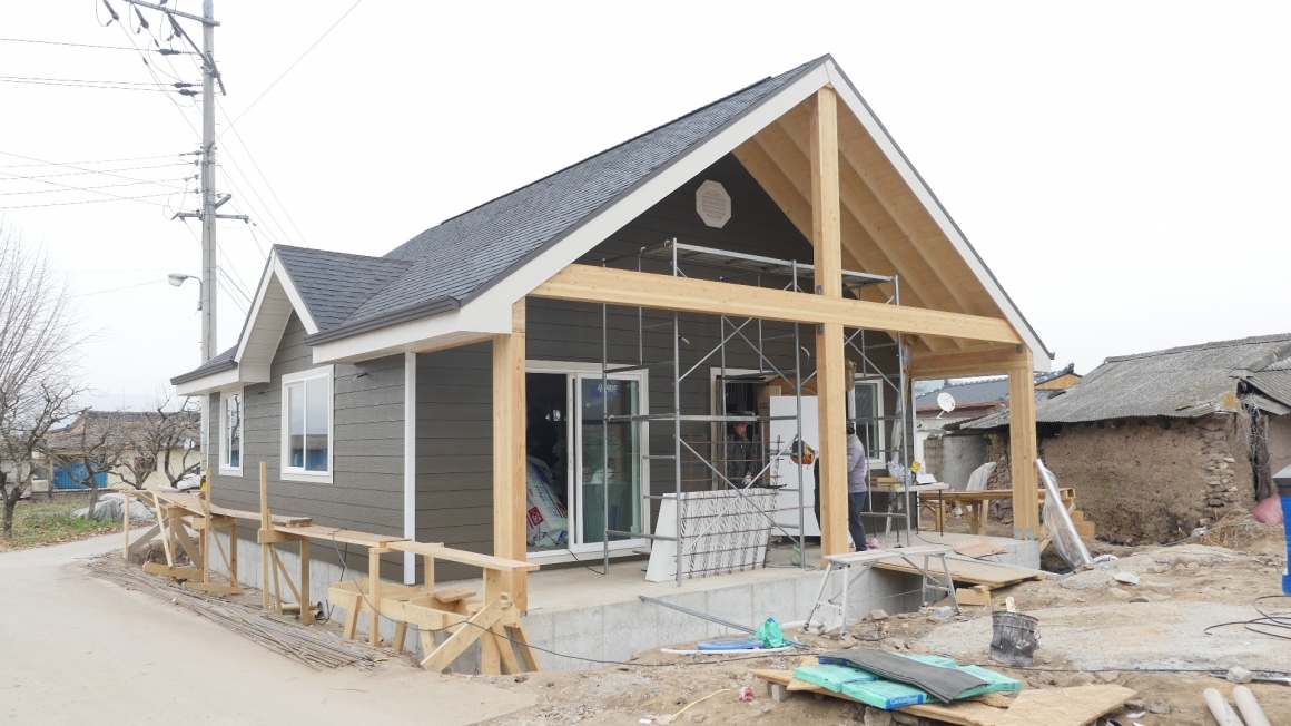 안녕하세요 한양하우징 임현돈입니다. 청도군 각남면 30평 외장공사를 마무리하고 있는 중이며, 풍각면 24평 기초공사를 마무리하고 골조공사를 한창 진행중에 있습니다. 12월 겨울이 오기전에 가능하면 습식공사를 마무리하고자, 비가 오는 날은 제외하고 가급적 현장을 진행하고 있습니다. 입구쪽 6-12" 글루램작업에 중점을 두고 집중하고 있습니다. 곧 사진을 올리겠습니다.